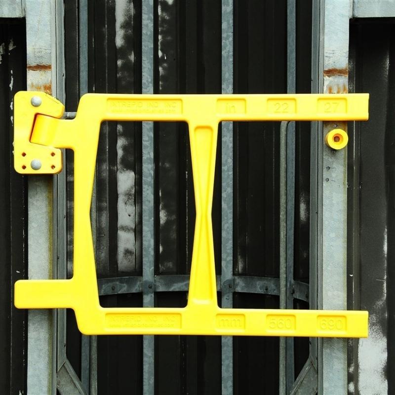 The self-closing double bar safety gate is designed to prevent falls from height at ladder openings, working platforms or pedestrian areas.